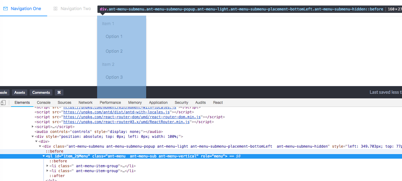 本文针对工作中的遇到的一个菜单组件对齐问题,粗略讲到了调试思路,antd组件结构,dom-align, MutationObserver 和 Debuggr for Chrome插件,涉及代码并不复杂, 希望读者看完能有些许收获。