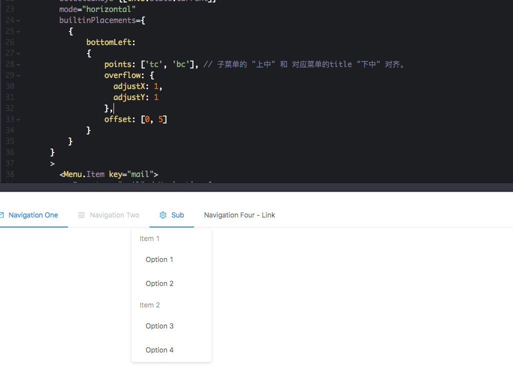 builtinPlacements: { bottomLeft: { // alignConfig对象 points: ['tl', 'tr'], offset: [10, 20], ... }, leftTop: { ... } }