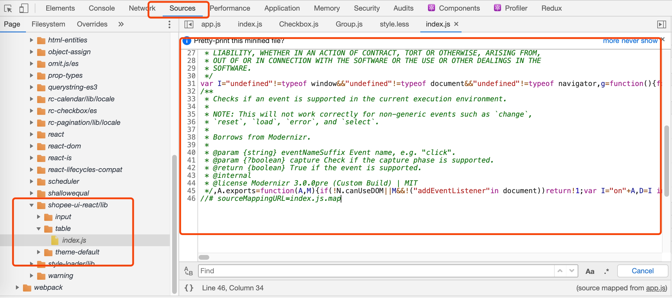 },所幸,组件库打包出了 source map 文件,因此我们可以通过加载 source map 来得到可阅读的代码。